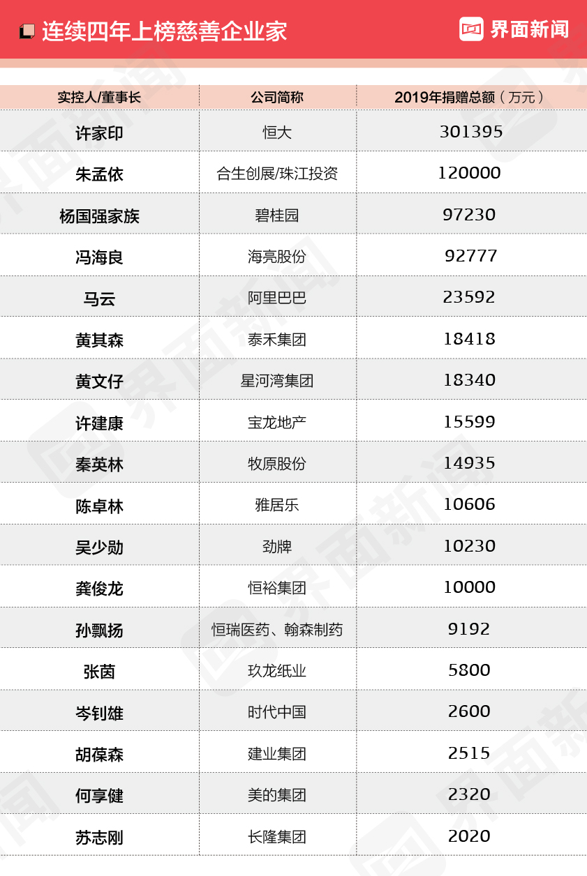 - 2020界面新闻中国慈善企业家榜