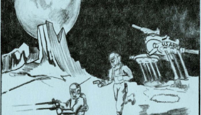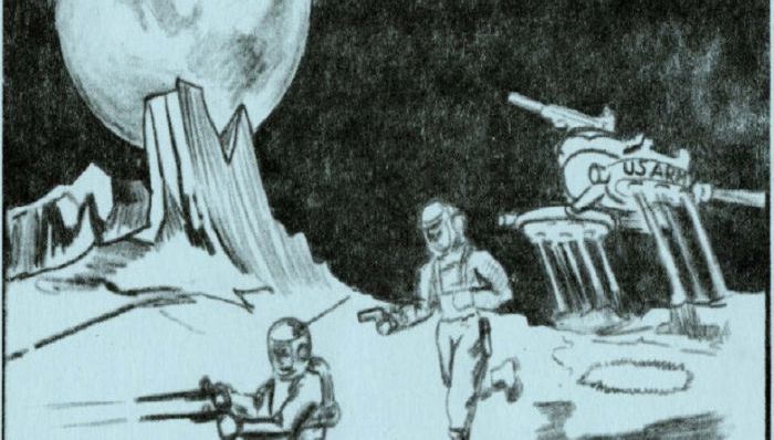 在1950年代的冷战时期,美国五角大楼设想建立宇宙轨道部队和月球军事基地。为了在全新的战场中有效自卫,美军认为士兵应当装备新一代武器。