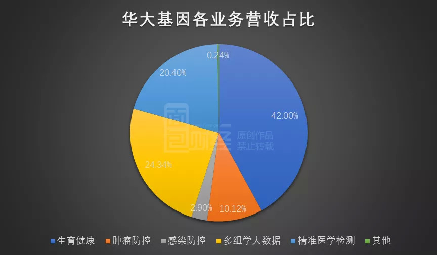 仔细研究发现,生育健康、肿瘤防控、感染防控、多组学大数据服务与合成业务以及精准医学检测构成公司最主要的收入来源,2019年的营收占比分别达到42%、10.12%、2.9%、24.34%以及20.4%。