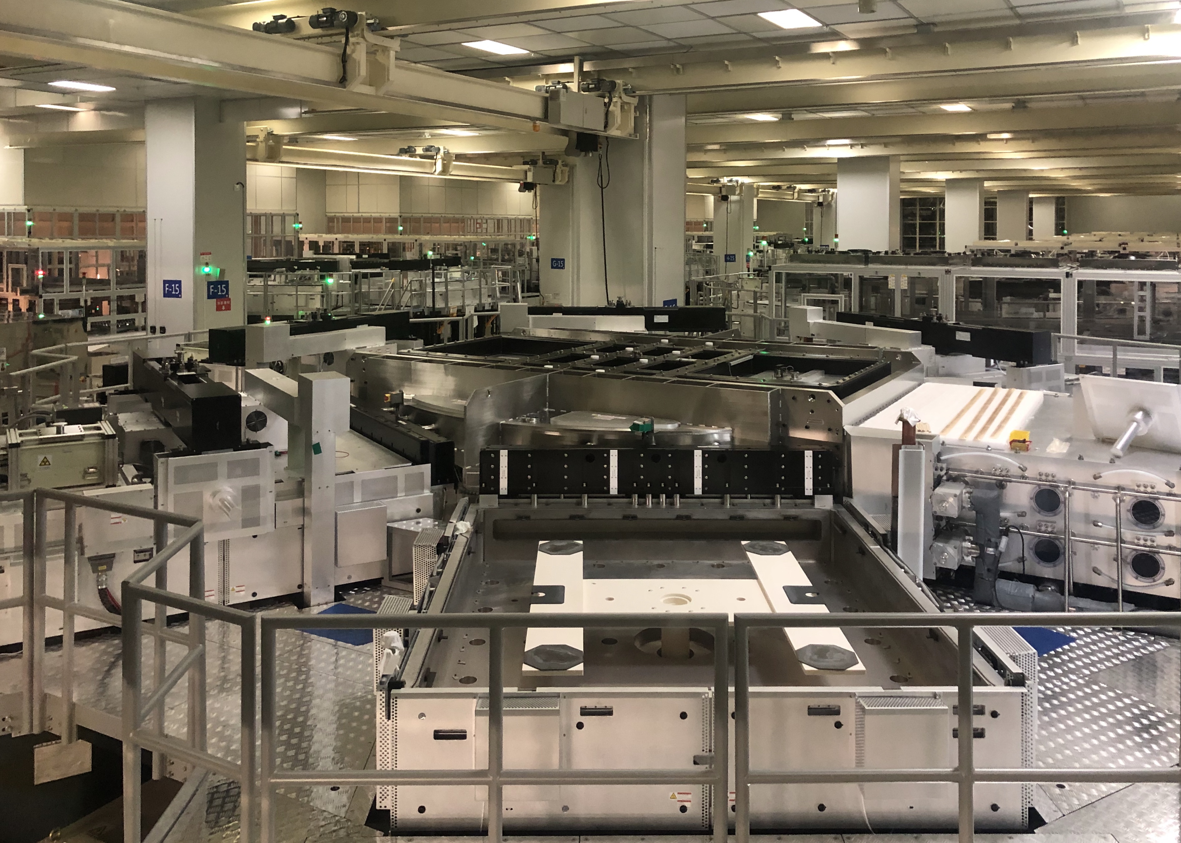 目前,TCL华星工厂已经具有较高的智能化水平。如界面新闻记者在车间中所见,一条长370m,宽226m,面积相当于12个足球场的产线中,机器若日夜不停地运行,每月产量可达到15万片,而现场用到的工人不过几十位。