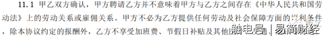 根据作者姬叉的分析:“新合同第11款,明晃晃把双方的关系定义为‘聘请’,也就是说作者就是网站聘请来写书的员工。但是,虽然是聘请却不存在雇佣关系,不提供法律要求的劳保社保等各项待遇。”