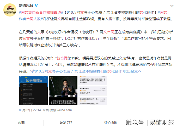 4月27日,国内网文论坛龙的天空(以下简称“龙空”)上陆续出现,关于讨论阅文新合同的帖子。