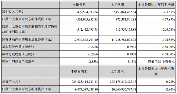 据泰禾集团2020年一季度财报显示,2020年第一季度,泰禾集团实现营业收入4.80亿元,同比下滑93.57%;净利润亏损5.64亿元,同比下滑157.99%。这是泰禾集团近5年后首次一季度业绩亏损。