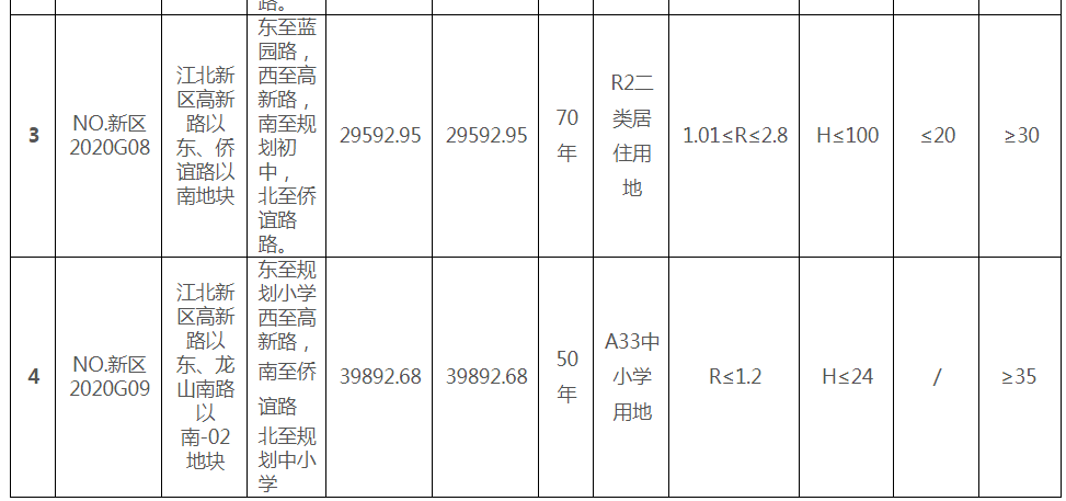 5月7日,南京土地市场官网挂出2020年宁新区出第03号公告,江北高新区4幅地块即将出让,2幅二类居住用地和2幅学校用地。