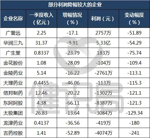 从上述数据可以看到,尽管利润排名较高,但是如华润三九、云南白药、天士力等企业的利润不升反降,其中华润三九的降幅达到了54%以上。