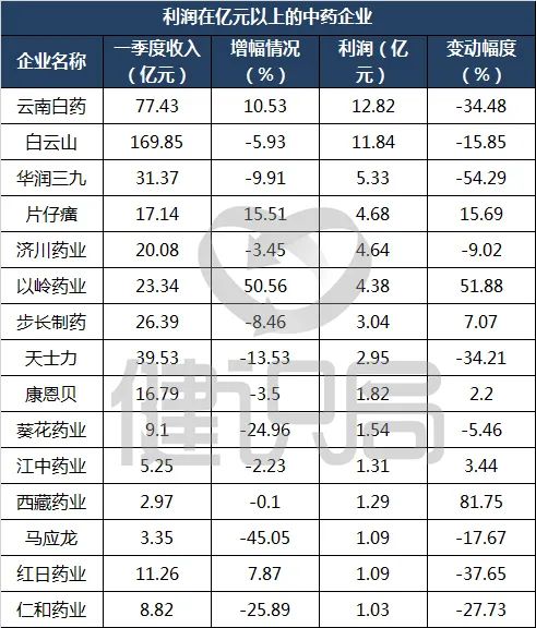 从东方财富网公开数据看,目前已发布2020年第一季度报的51家中药企业中,14家企业利润实现正增长。