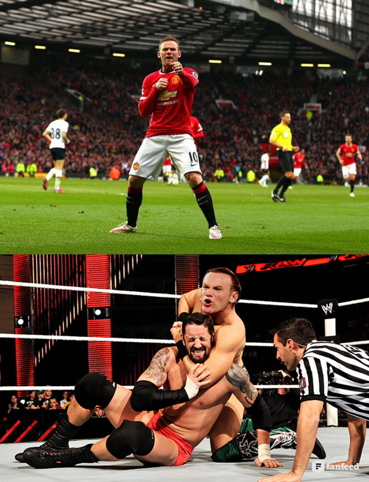 不过,熟悉WWE的观众也自然清楚,这项本就以娱乐为主的活动都是有着它事先安排好的“剧本”——当然鲁尼对拳王巴雷特的这次掌掴也不例外。要知道年少之时的鲁尼也曾受过拳击训练,而在上赛季主场3-0战胜热刺的比赛中,进球之后的他还做出了一套打拳击,然后仰面倒地的庆祝动作。