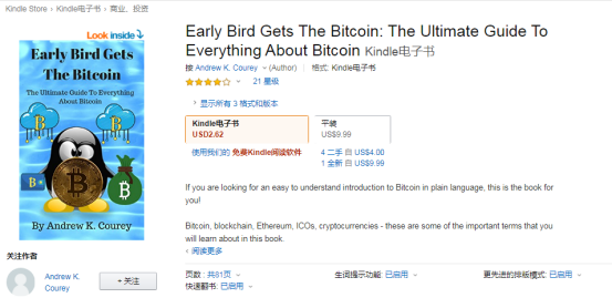 在Andrew的努力下,2018年1月这本57页的书本正式在亚马逊Kindle上架。从官网的留言来看,读者对该书的看法普遍积极,认为这对想要了解比特币的孩子来说,是很好的资源。