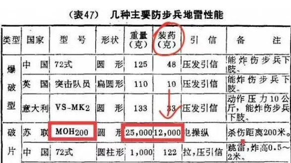 一些常见杀伤人员地雷的性能参数。其中前3型地雷因为质量相对较小,非常适合大范围机械撒布
