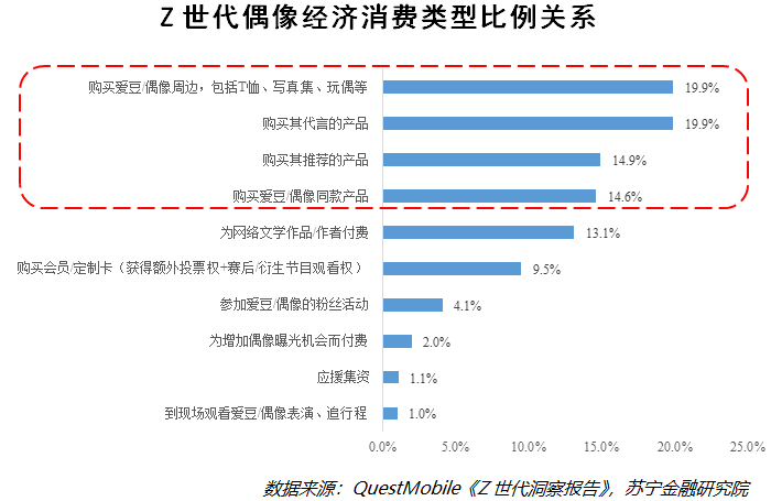 值得注意的是,Z世代喜欢追随偶像的步伐——需知,偶像并非单纯指代某一个实实在在的个体,只要寄托了美好的愿景和“人设”,哪怕虚拟形象也没关系。QuestMobile发布的《Z世代洞察报告》显示,有接近70%的Z世代年轻人会愿意购买“爱豆(英文idol的音译)”周边及同款产品,或是其代言推荐的产品,这或许会让Z世代觉得更接近自己理想的“人设”。