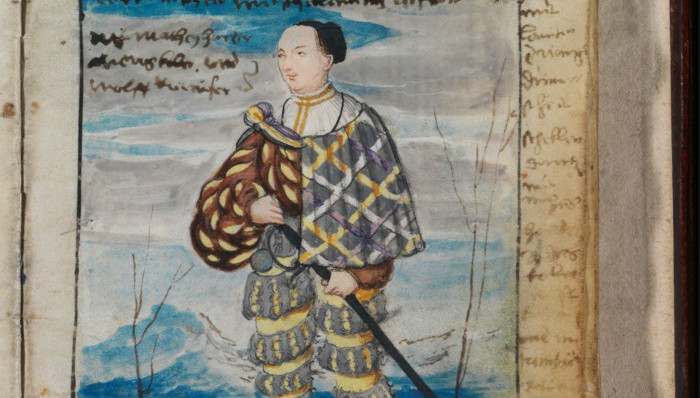 会计先生Matthäus的一个个时尚造型,在他所处的时代和地方看来似乎也很平常。但这其实呈现了一段相当独特的时装历史。因为纺织业和金属加工业的蓬勃发展,再加上地势邻近意大利,奥格斯堡在从15世纪末期到宗教改革期间,曾是一批最会打扮的时尚男性的乐园——你看看书里面充满了色彩、不对称图案、条纹、装饰性的剪裁和开叉。这个时期因为人们重视休闲和社交的活动,于是击剑、射箭、滑雪等专业运动服装也得以发展。时尚书《Klaidungsbüchlein》中刻画的这些最顶级的时尚,甚至比那个世纪最伟大的肖像画家Hans Holbein所描绘的更加细致精确。
