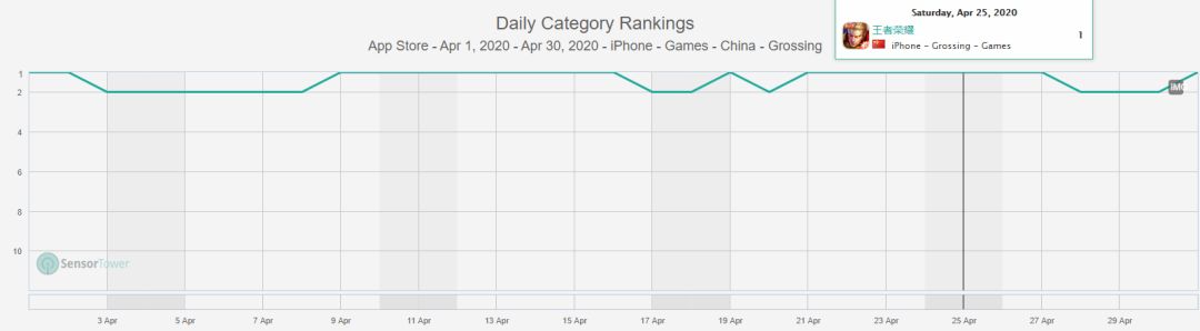 回顾整个4月份,《王者荣耀》在国内iOS游戏畅销榜的排名都稳定头两名,而且大部分时间稳居榜首。而据Sensor Tower商店情报平台估算,《王者荣耀》4月份在国内iOS平台的营收约为1.03亿美元(折合约7.29亿元人民币)。