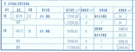 07-01地块此前为93.5米的写字楼增加至98.78米,共22层;并核增54平方米作为城市公共通道,属于不计容面积。