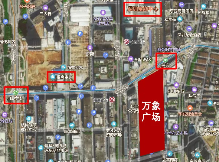 仅万象广场周边,就有宝能中心、深业泰富、招商中环等多个项目在建。