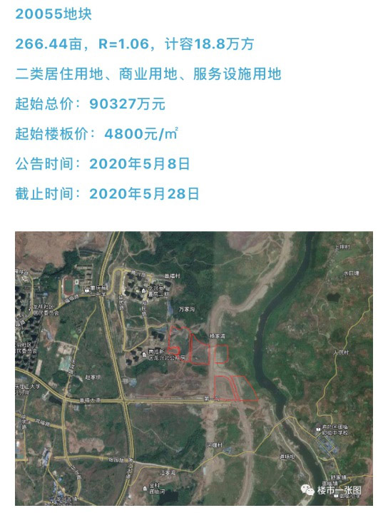 5月8日,公共交易中心新公告2宗地,均位于龙兴版块。20055地块,约266.44亩,为二类居住用地、商业用地、服务设施用地;20056地块,约308.08亩,为二类居住用地、商业用地。