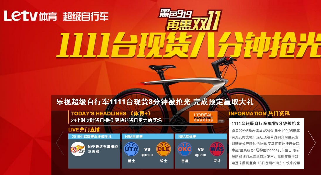 乐视体育——8分钟抢空自行车