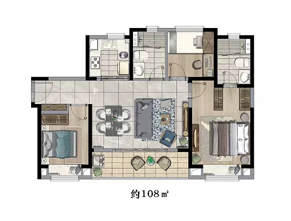 建面约108㎡户型图: