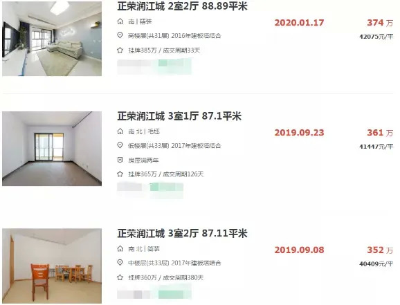 正荣润江城二手房价格高也不是个例,纵观核心区二手房价格,正荣润锦城挂牌均价也高达37000元/㎡,雅居乐滨江国际由于户型较大,挂牌均价也在34000-36000元/㎡左右。