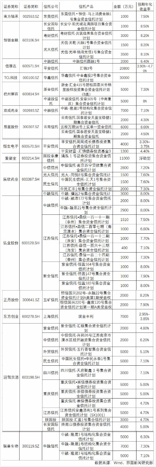 那么,上市公司今年以来都投了哪些信托公司的哪些产品呢?