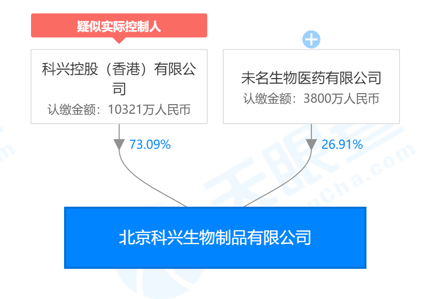 另一方面,未名医药似乎与科兴有些“沾亲带故”。天眼查显示,未名医药是北京科兴生物制品有限公司26.91%的股东,另一个股东为持股73.09%的科兴控股(香港)有限公司。而上述的北京科兴中维生物技术有限公司,则由科兴控股(香港)有限公司100%控股。