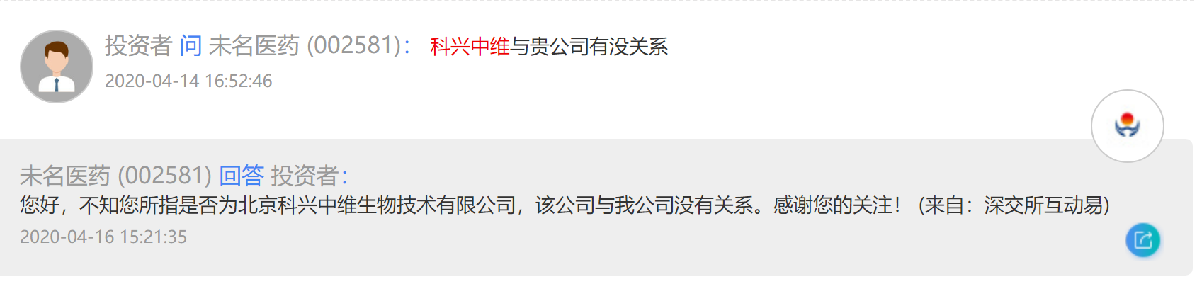 实际上在互动平台上,未名医药曾表达了科兴中维生物技术有限公司与未名医药之间没有关系,所以严格来讲,算是蹭个热度吧。