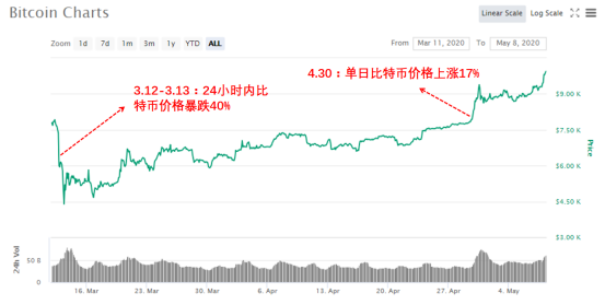 正当市场哀嚎不断,担心这次踩踏式恐慌情绪能否恢复,盘算着自己要被套到何年何月的时候;4月30日比特币市场再次启动,24小时内大涨17%,价格重新站回9000美元上方,并突破9400美元关口。不仅如此,当天比特币市场交易量仅次于历史高点的3月13日,数值高达669亿美元。