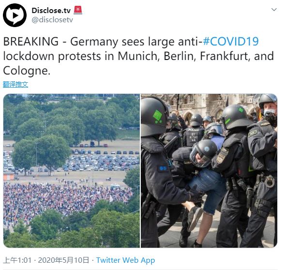 在柏林,抗议者高呼“自由”,向现场的警察投掷玻璃瓶;慕尼黑的游行则吸引了3000多人参加。
