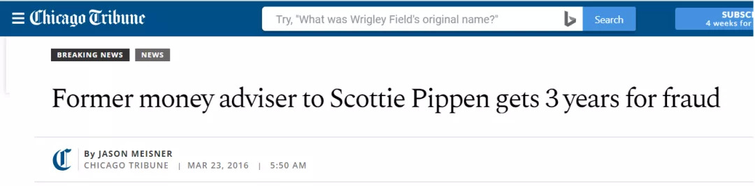 关于皮蓬被骗的新闻报道