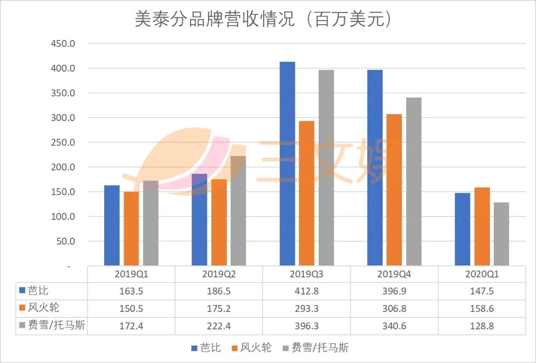 美泰的4条产品线,3大品牌基本都受到疫情影响,出现了不同程度的下滑。