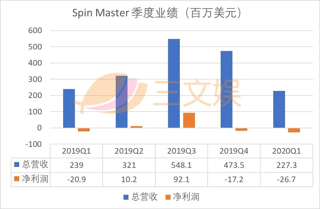 Spin Master虽然不像孩之宝那样已经有了成熟的影视制作和发行能力,但在非玩具业务方面也有深厚的积淀,展现出来了较强的抗风险能力,一季度营收只下滑了4%。