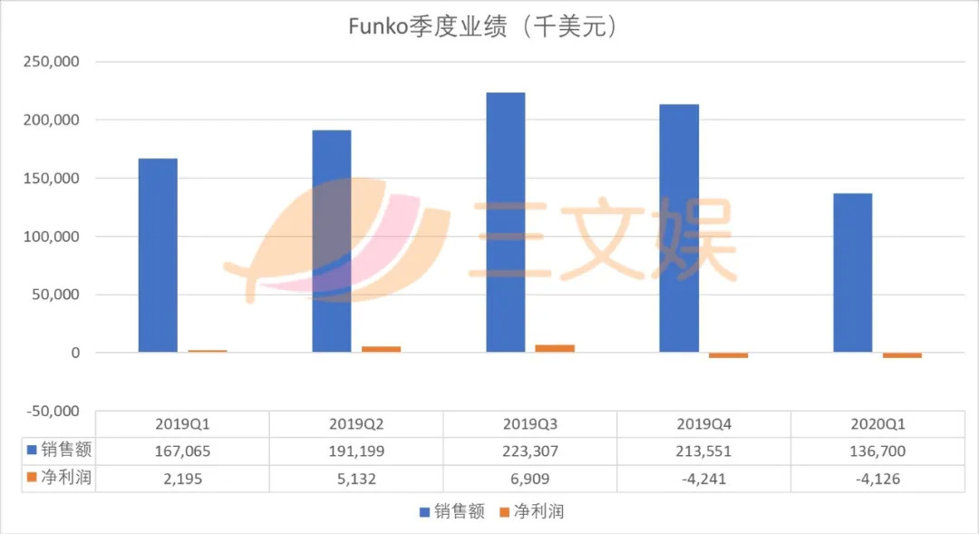 由于Funko的产品都是IP衍生潮玩,一季度大片纷纷撤档,Funko可能是业绩受疫情冲击最严重的玩具公司。