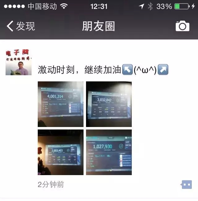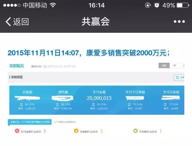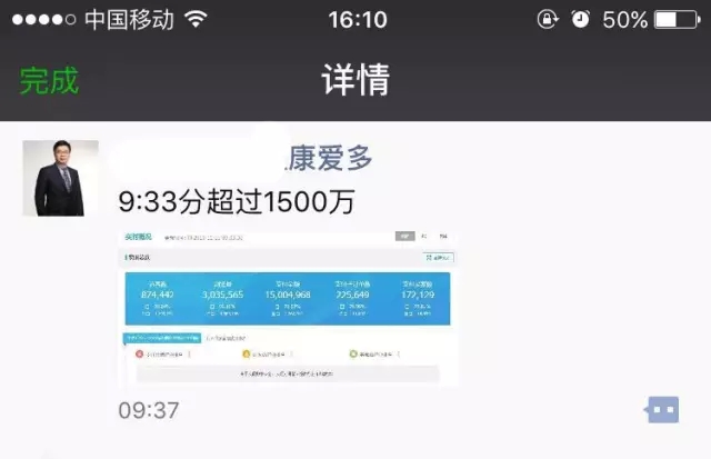 随后,康爱多CEO王燕雄不断发布信息,公告康爱多的销售战绩。上午9:33,康爱多的销售额已经突破1500万元。下午14:07,通过共赢会,康爱多公布销售突破2000万元的消息。