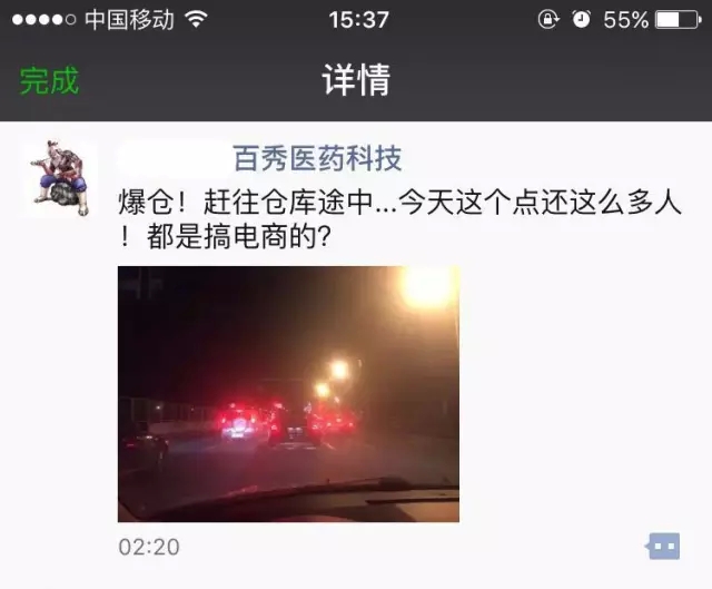 百秀大药房CEO马力凌晨02:20在朋友圈发文,驱车赶往仓库支援。