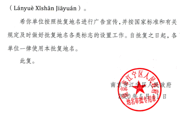 同一日,江宁区还同意并批复了五矿大学城G82地块的备案名“澜悦溪山家园”。