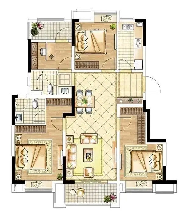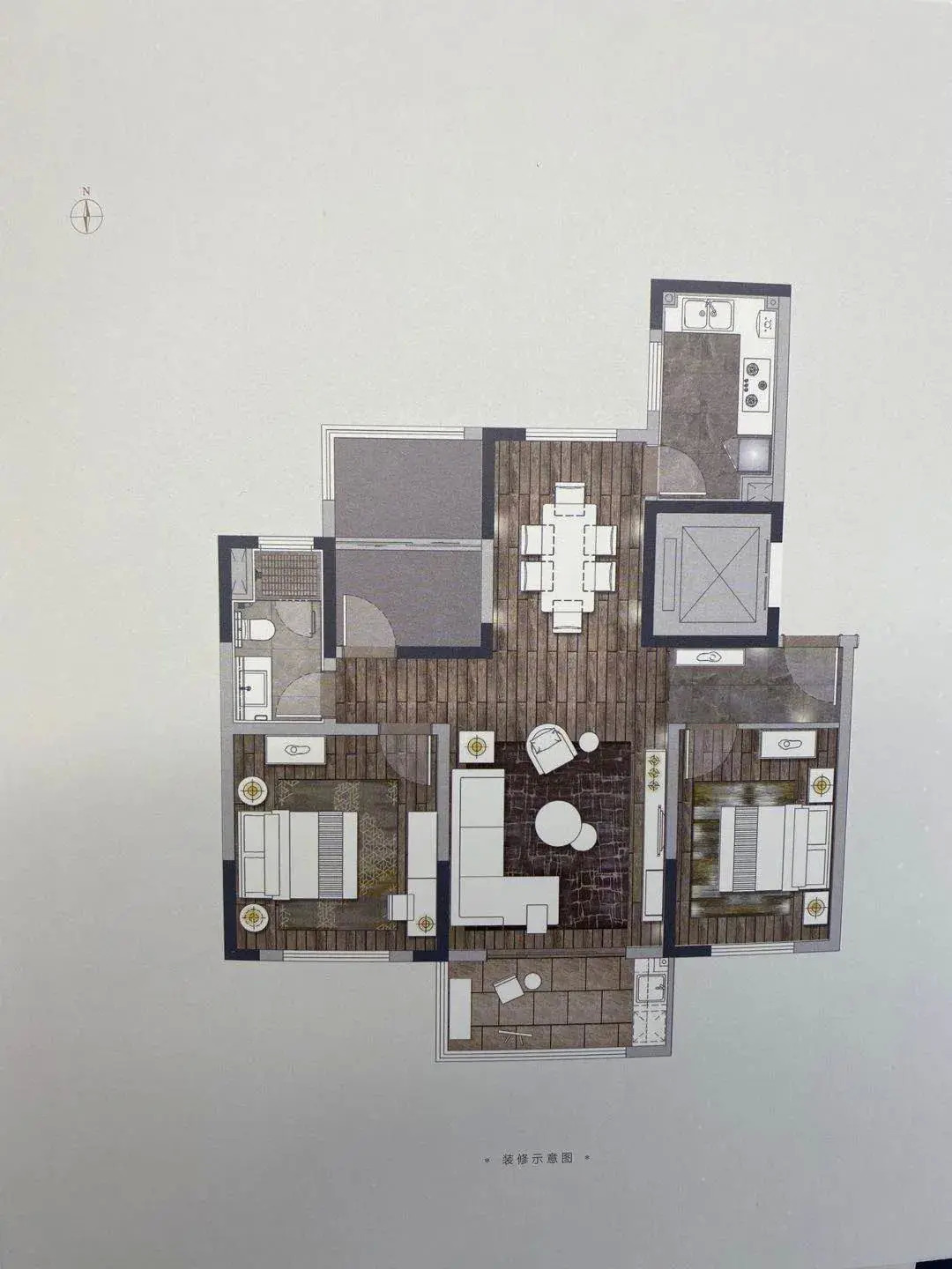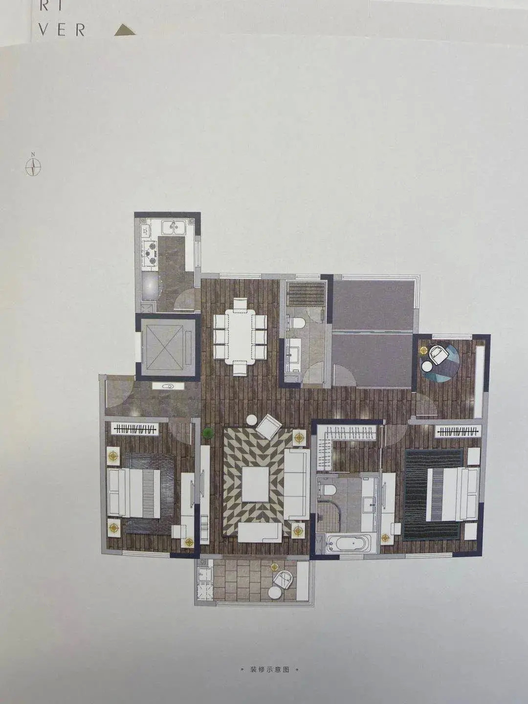 130㎡户型是三室两厅两卫设计,三开间朝南,4.2米超大尺度阳台,主卧是套间设计,客厅开间4.2米,南北通透。