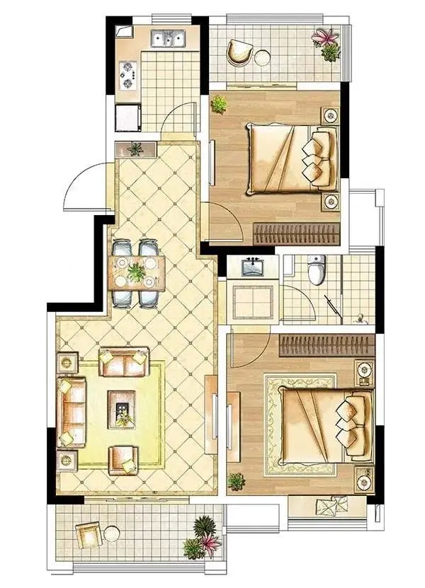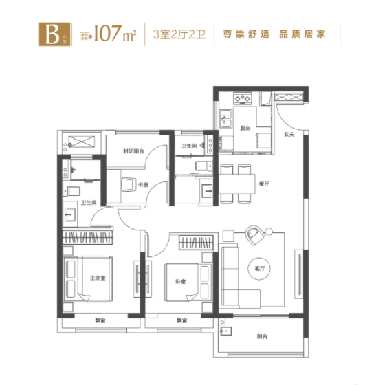 ▼B户型 建筑面积约84㎡ 两室两厅一卫