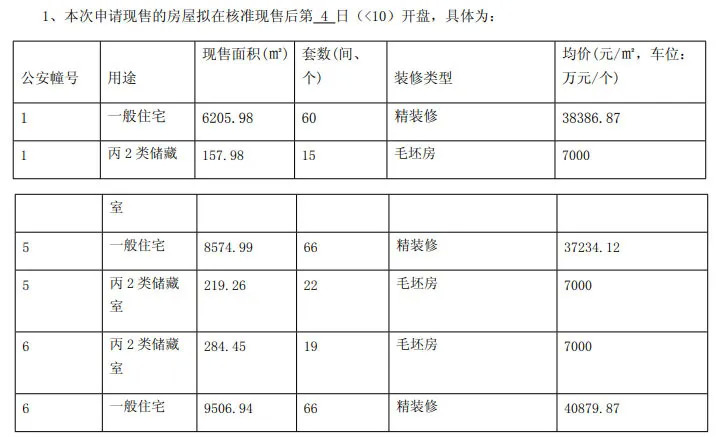 8-9月推完剩余全部,放风价3.15万/㎡,预计今年12月毛坯交付。