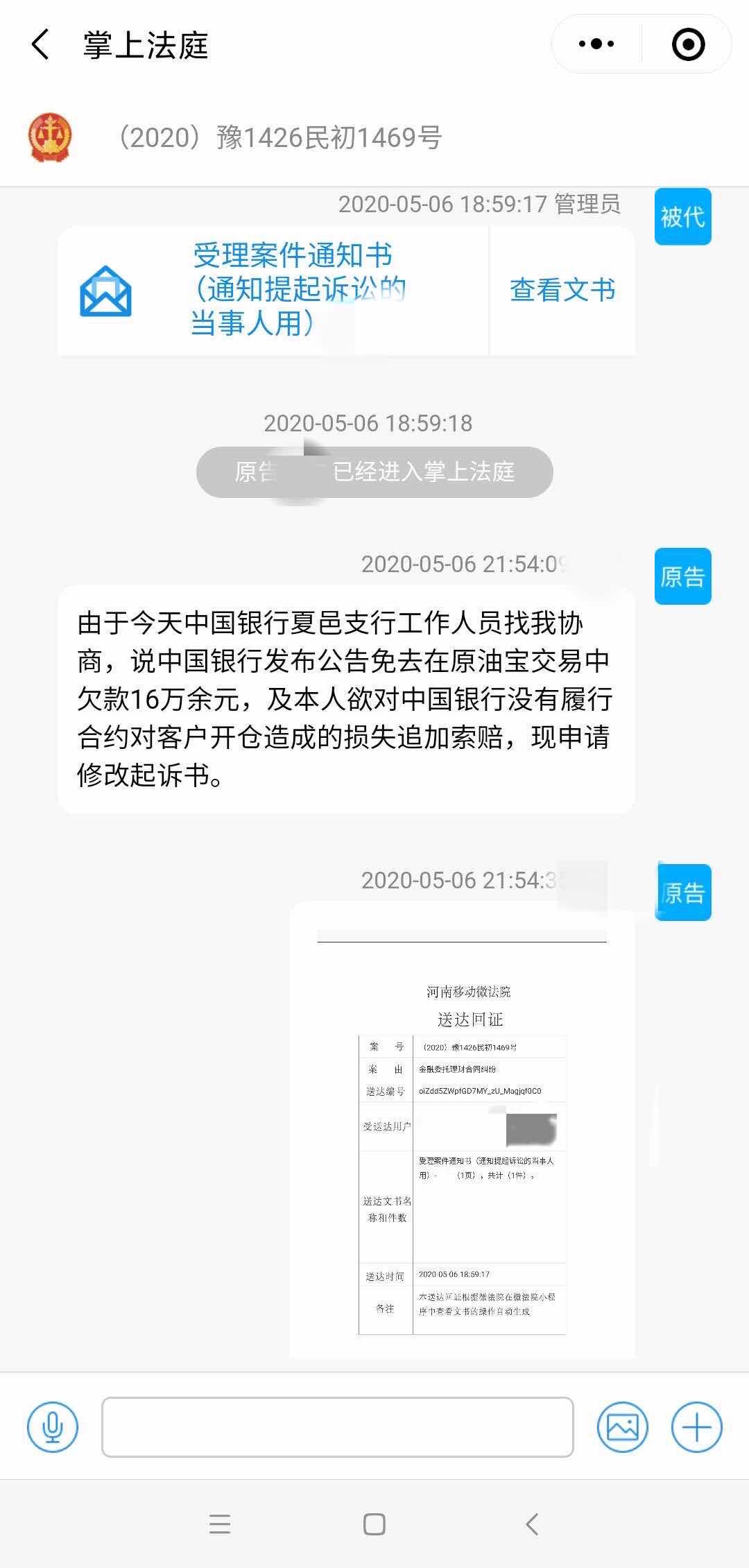 5月12日,界面新闻获悉,已有来自河南省夏邑县的原油宝投资者收到当地法院受理案件通知书,立案成功。