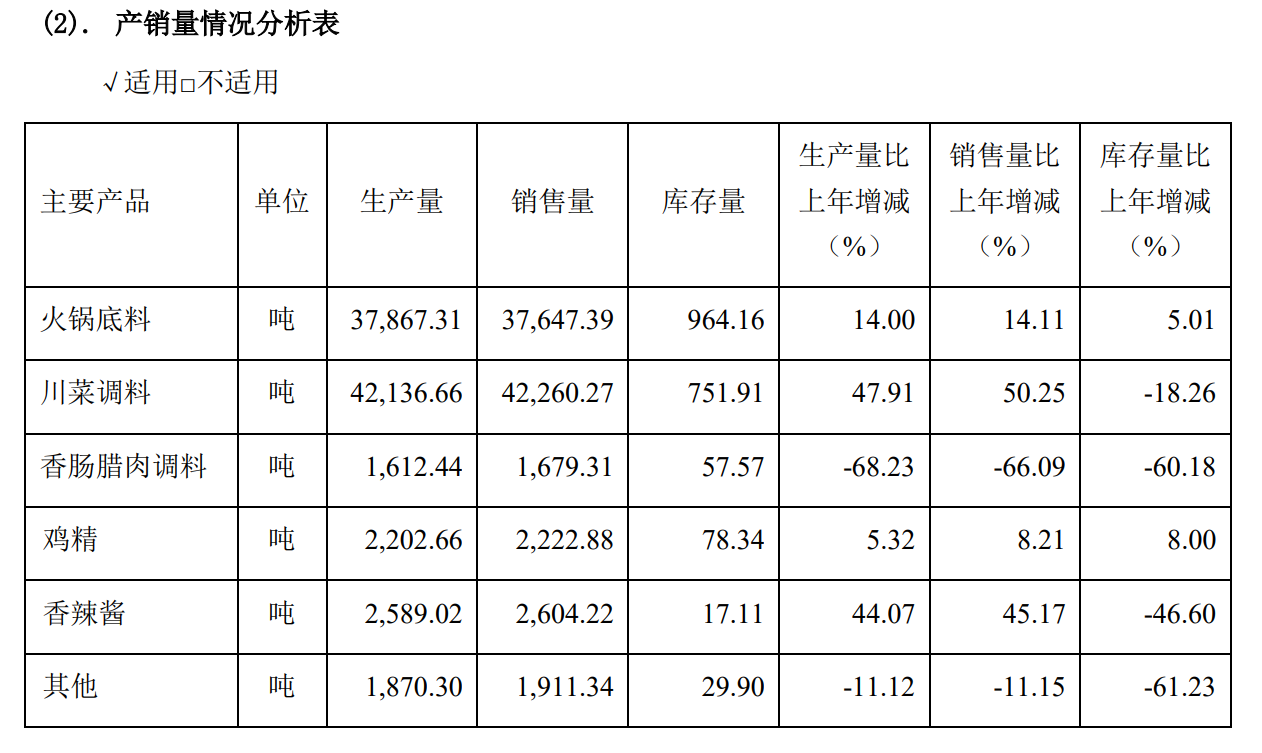 资料显示,天味食品主要从事川味复合调味料的研发、生产和销售,产品包括火锅底料、川菜调料、香肠腊肉调料、香辣酱等9大类100多个品种,同时公司还为国内连锁餐饮企业提供定制餐调产品。