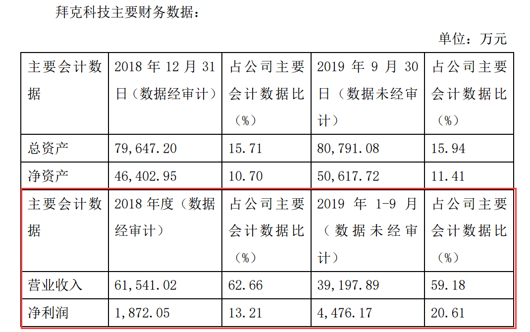 财报显示,拜克科技是瀚叶股份主营业务收入的主要来源。
