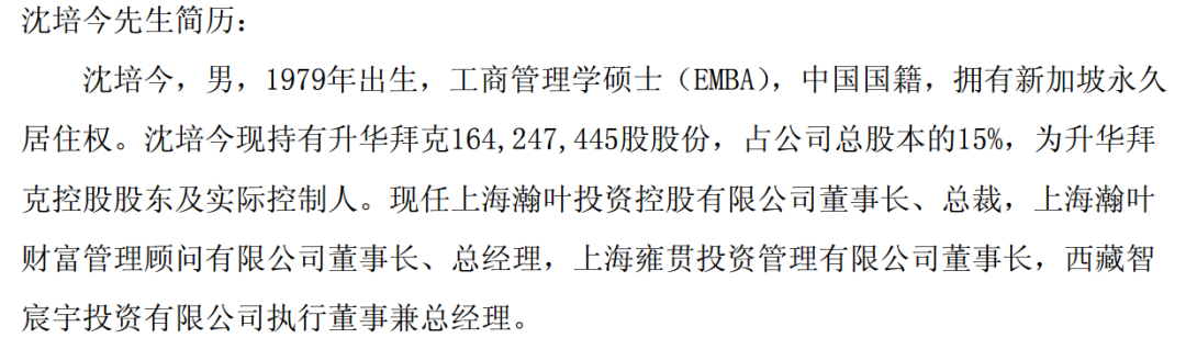 后来升华拜克前控股股东升华集团又快速对所持股份做了大规模减持成为二股东,沈培今则成为升华拜克的第一大股东、实际控制人。