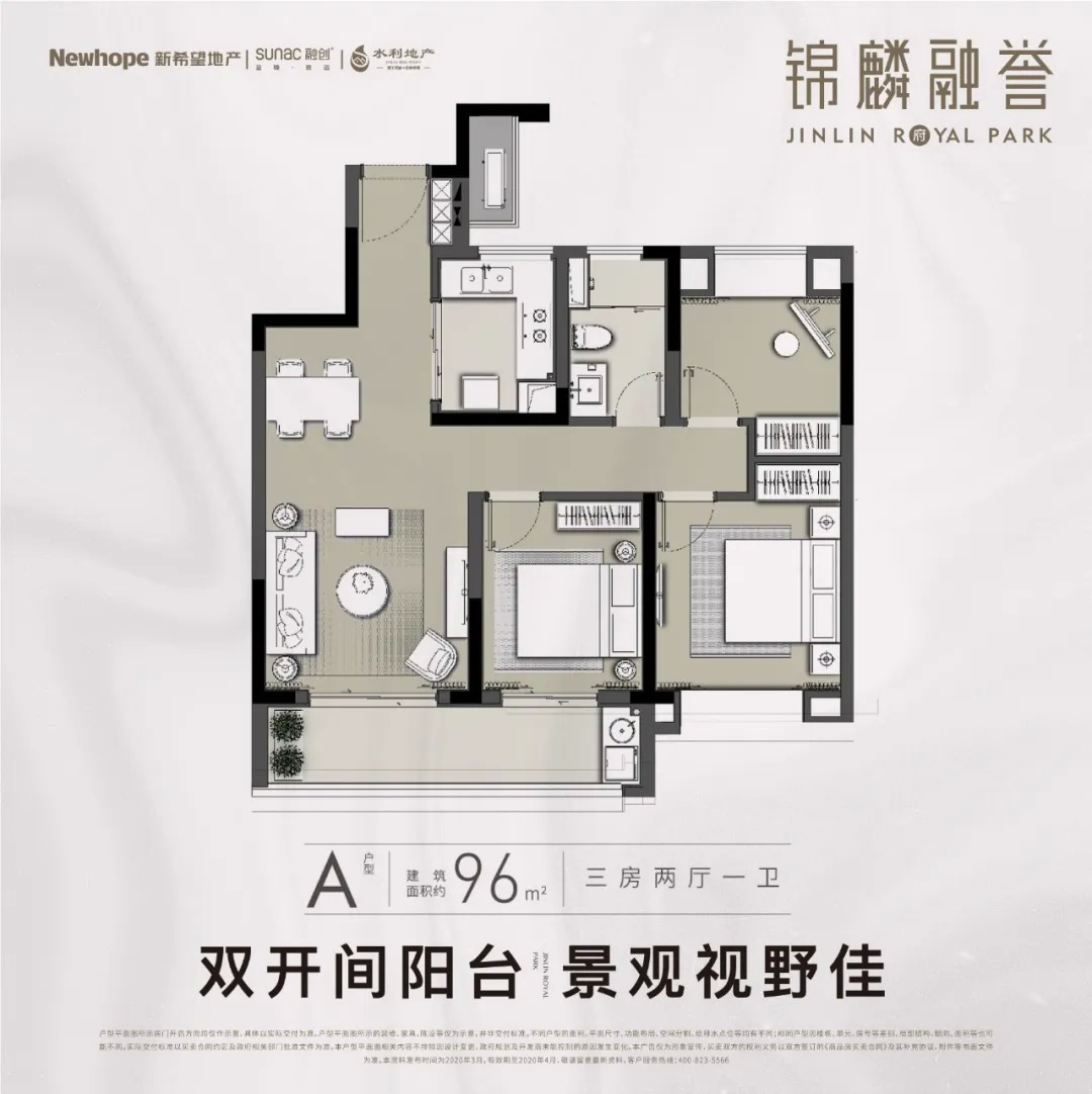 锦麟融誉府打造建面约96-143m2改善户型,坚持风光入家的原则,设计朝南多开间与双开间大阳台。尤其在受疫情影响的当下,越来越多的购房者对于通风、采光都有着更高的要求。