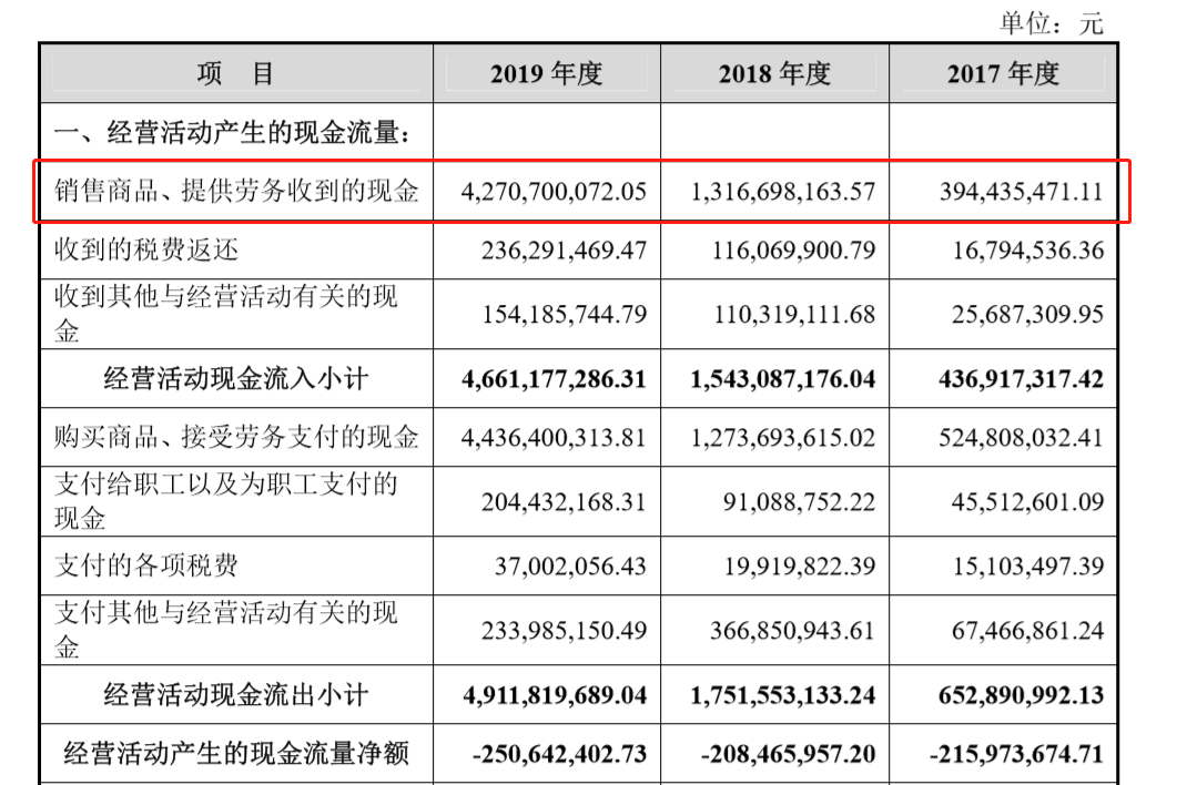 令人疑惑的还有,中伟股份存在严重的营收和现金流量不匹配问题。以2018年为例,中伟股份营收30.68亿元,销售商品、提供劳务收到的现金仅为13.17亿元,两者有17.51亿元的鸿沟。而同期经营性应收款项(含应收账款、应收票据、应收款项融资科目)仅增长2.53亿元。