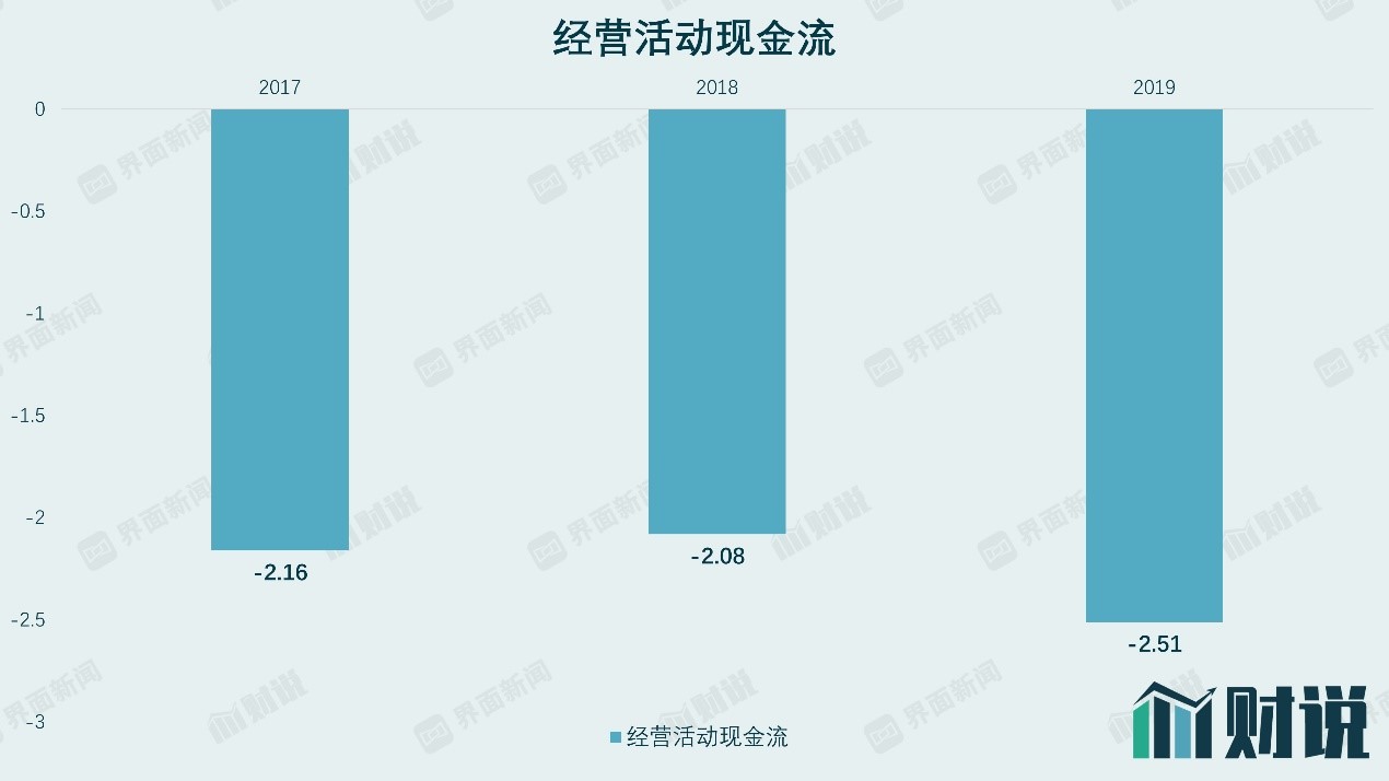 年年盈利的中伟股份其实连连失血。公司连续三年经营性现金流呈现净流出状态,合计净流出6.75亿元,占2018年、2019年净资产比例分别为137.76%、31.93%,净资产占比下滑的最主要原因自然是依靠此前的资本注入。