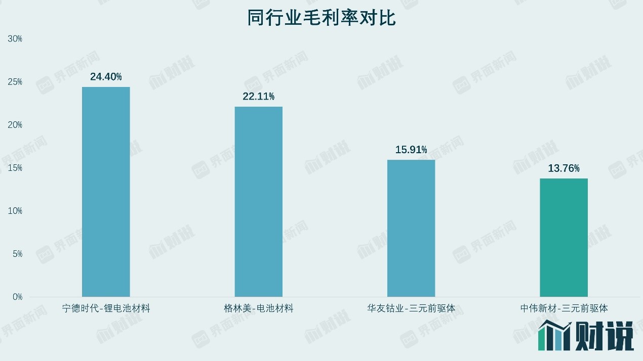 中伟股份毛利率低的另一个原因是整个行业进入门槛低,缺乏对下游客户的话语权。这一点从诸多主流电池厂商都有自己的三元前驱体生产子公司可以看出。以广东邦普为例,公司为动力电池巨头宁德时代的控股子公司,产品主供宁德时代,2019年三元前驱体全球市占率为9.3%,排名第三。另一家科创板动力电池头部公司容百科技(688005.SH)也自产自用三元前驱体。