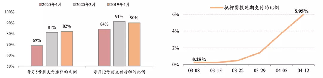 方正财经(公号ID:founderfinance)根据美国多户住房委员会和WIND的近期高频数据可以看出,租客逾期支付房租的比例有所增多,按揭购房者延期支付抵押贷款的比例也快速上升,美国家庭部门流动性压力已开始显现。
