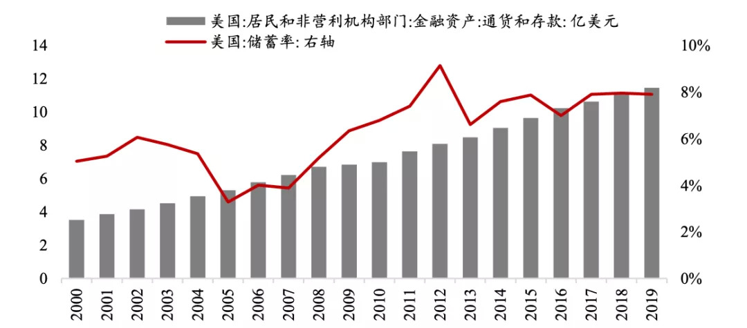 美国是典型的低储蓄率国家,居民通过信贷方式进行超前消费的情况十分普遍。