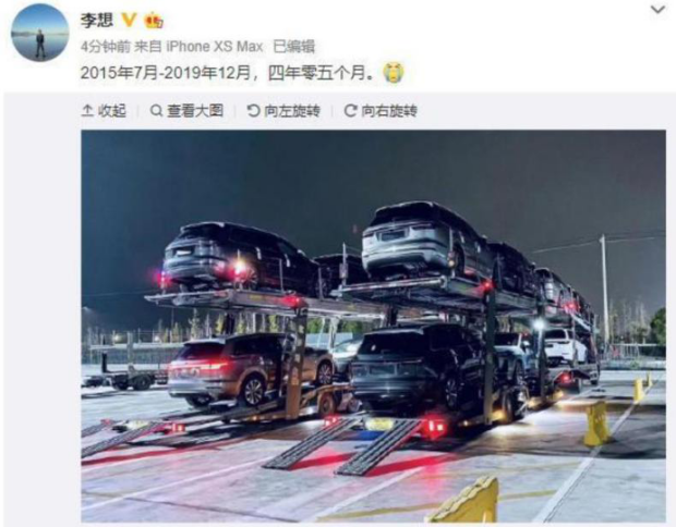 用面对“巨大挑战”形容理想汽车的2020年,最合适不过。2019年12月2日,首批下线的理想ONE 2020款开始交付,理想汽车CEO、创始人李想在微博晒出物流运输照片并写道“2015年7月-2019年12月,四年零五个月”,预示理想汽车迈入新的时代。