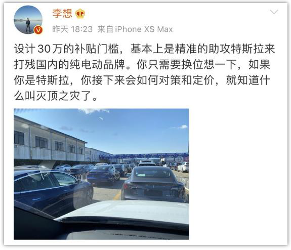 国产化的特斯拉Model 3利润率本来就高,美国的特斯拉Model 3标准续航升级版售价不到4万美金,约合人民币28万元。在补贴新政出台后,特斯拉立即不顾老车主的感受,同款车型先涨价后降价,让Model 3标准续航升级版降价到30万元以内,李想一语成籤。