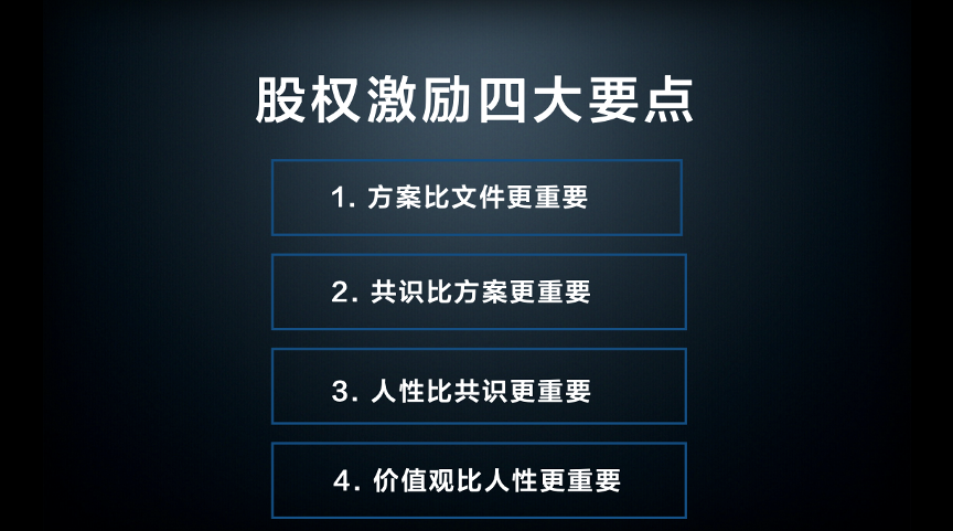 根据多年股权激励的经验,我们总结了设计和实施落地的四大要点: